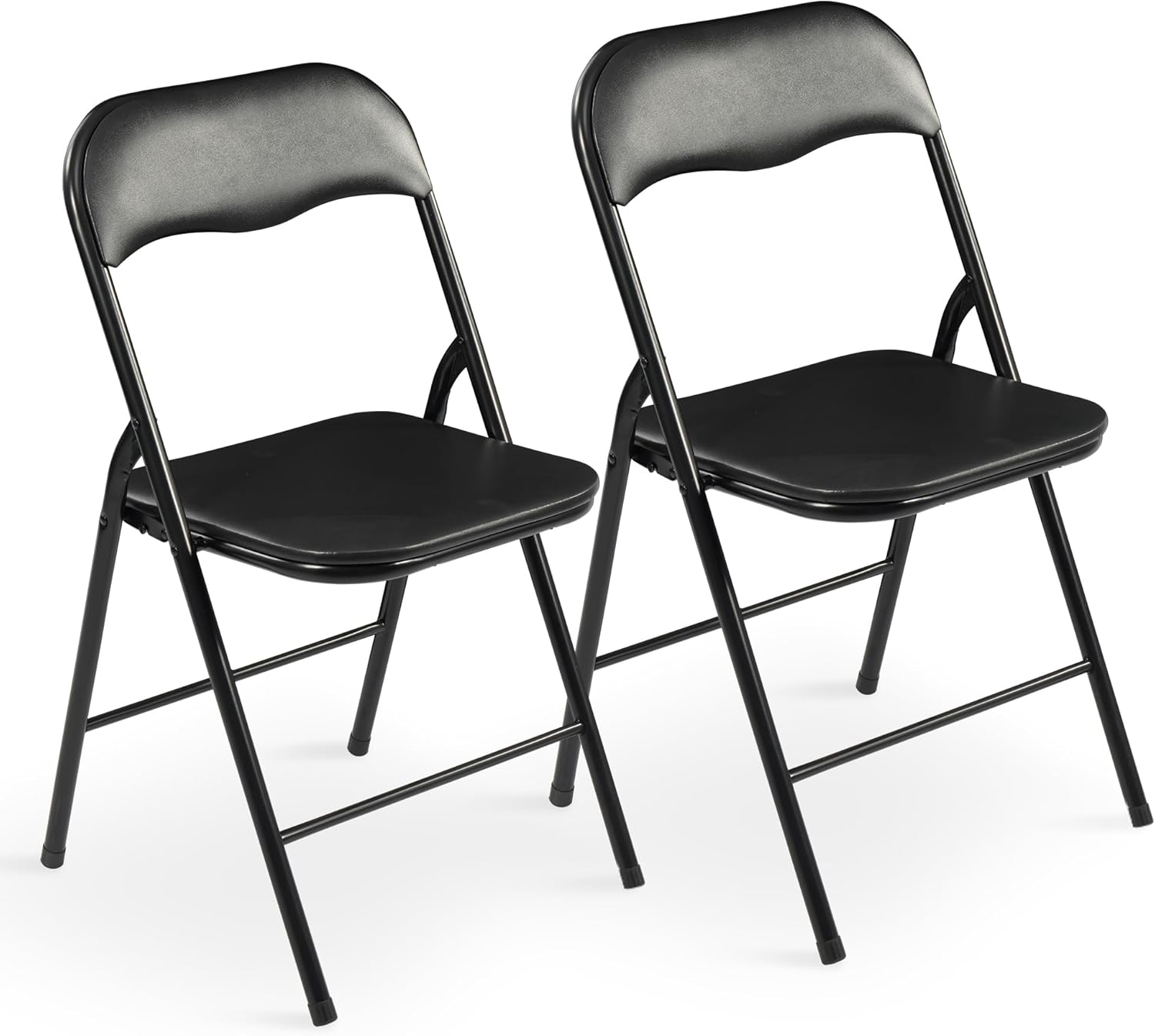 Elevon Folding Chairs 2 Pack, Padded Vinyl Cushion Chairs with Sturdy Metal Frame for for Home and Office, for Indoor and Outdoor Events, 300lb Capacity, Black