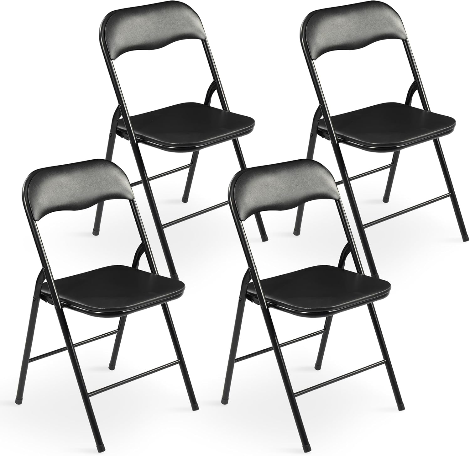 Elevon Folding Chairs 4 Pack, Padded Vinyl Cushion Chairs with Sturdy Metal Frame for for Home and Office, for Indoor and Outdoor Events, 300lb Capacity, Black