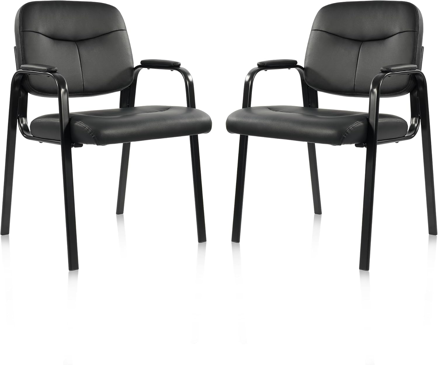 Elevon Waiting Room Chairs No Wheels Set of 2, Leather Stationary Office Reception Guest Chair with Padded Arms for Elderly Desk Conference Room Lobby Table Side Salon